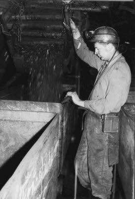 Ich habe dann später auch als Lader in steilen Abbauorten Kohlen geladen. Dort wurden Ladekasten eingebaut, bei denen man einen Schieber öffnete, und den Wagen füllte Bei abführender Wetterführung gab es soviel Staub, dass man vielleicht drei Meter sehen konnte Aus diesem Grund trug ich auch eine Staubmaske. Es kam vor, das von den herunterfallenden Kohlen im Streb auch Stempel weg geschlagen wurden, und dann im Kasten landeten und verhinderten dass man diesen schließen konnte. Dann war Eile geboten, man sägte ihn ab zuvor musste man aber verhindern dass neben dem Stempel weitere Kohle herauskam Das ging nicht immer, und dann war schaufeln angesagt. Es kam auch vor das durch mehrere verkeilte Stempel über dem Kasten keine Kohle in den Kasten lief.